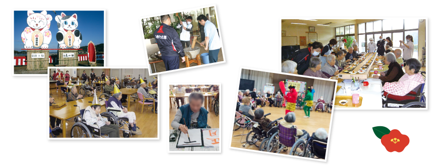 紺月の誕生H会をはじめ、春のお花見、夏の七夕まつり、秋の運動会、冬のクリスマス会など、一年を通じてさまざまな催しを実施しています。近隣の学生さんや園児さんとの交流があり、ひときわ楽しみな一日となっています。